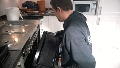 When your expert arrives, he will carefully examine the appliance and determine the best way to clean. All removable parts will be soaked in a dip tank while he scrubs the rest of the cooker meticulously. In the end, the technician will put the parts back and the job is done. You can start using your Aga cooker right away.