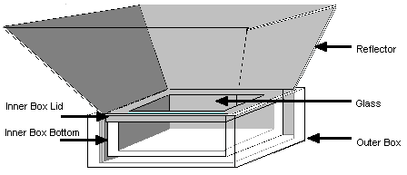 The device is pretty simple. It contains of heat reflecting chamber which is well isolated, several additional reflecting sheets to guide more heat into the chamber, heat resistant and isolating glass. The idea is to reflect as much sunlight into the chamber as possible and to keep it there. That sunlight is transformed into heat which cooks the food. Simple!